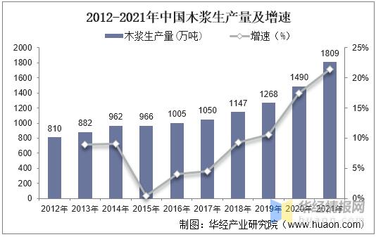 資料來源:公開資料整理 木漿是制作生活用紙的主要原材料,我國是木漿生產(chǎn)大國,產(chǎn)量持續(xù)增長。據(jù)中國造紙協(xié)會數(shù)據(jù),2021年全國木漿生產(chǎn)總量達(dá)1809萬噸,同比上升21.41%。 2012-2021年中國木漿生產(chǎn)量及增速