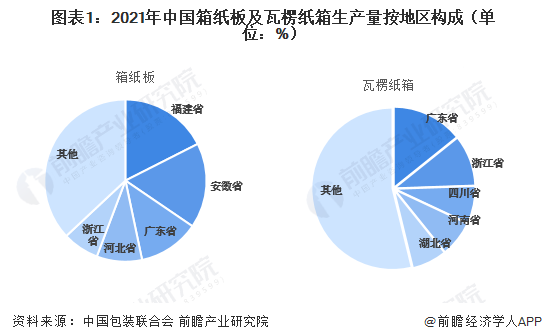 紙制品包裝區(qū)域總體發(fā)展分析 我國東部沿海地區(qū)在紙制品包裝工業(yè)領(lǐng)域也處于絕對領(lǐng)先地位。據(jù)中國包裝聯(lián)合會(huì)統(tǒng)計(jì)數(shù)據(jù)顯示,2021年,我國主要紙制品包裝產(chǎn)品產(chǎn)量前五地區(qū)大部分位于東部沿海,其中箱紙板產(chǎn)量排在前五位的地區(qū)依次是福建省、安徽省、廣東省、河北省以及浙江省,五省箱紙板合計(jì)產(chǎn)量占全國產(chǎn)量的63.03%;瓦楞紙箱產(chǎn)量排在前五位的地區(qū)依次是廣東省、浙江省、四川省、河南省以及湖北省,五省瓦楞紙箱產(chǎn)量合計(jì)占全國產(chǎn)量的46.20%。