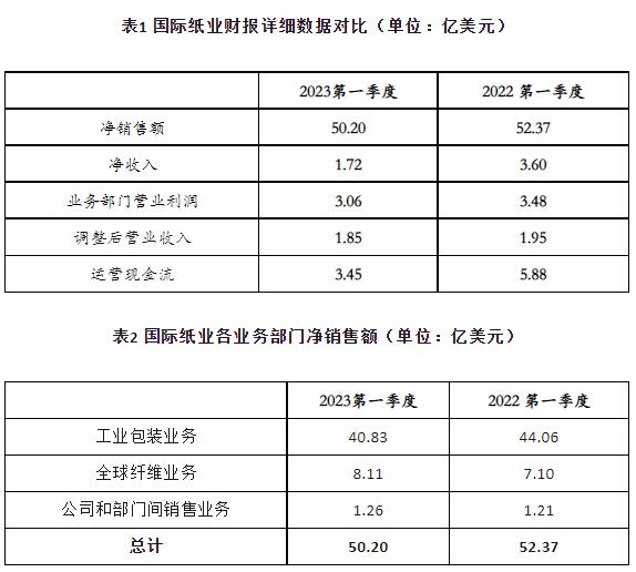 當?shù)貢r間4月27日,美國國際紙業(yè)公布了其2023年第一季度財報。