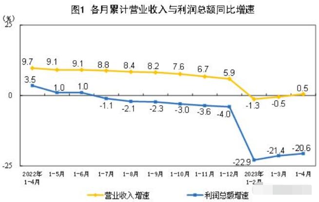 5月27日,國家統計局公布了2023年1-4月份全國規模以上工業企業利潤情況。數據顯示,全國規模以上工業企業在1-4月份共實現利潤總額20328.8億元,同比下降20.6%。