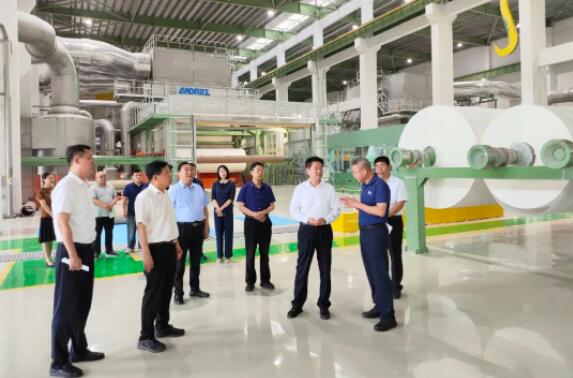 在公司新建生活紙車間現(xiàn)場,孫運鋒一行實地察看車間分切等試生產(chǎn)情況,詳細詢問項目投資進度、建設周期、工程進展、產(chǎn)品市場、運營發(fā)展及工作推進中遇到的困難和問題等情況,并就后續(xù)規(guī)劃項目進度進行了解。