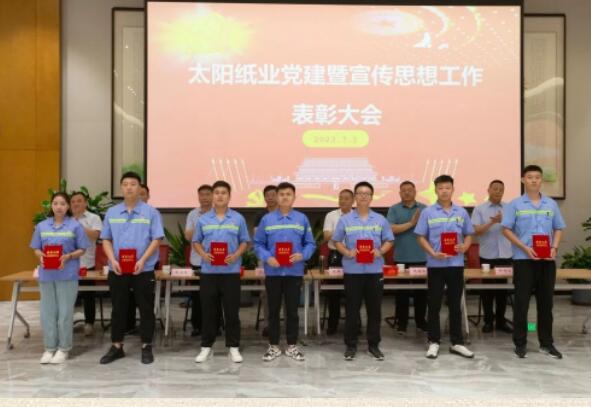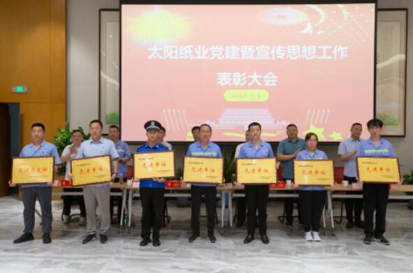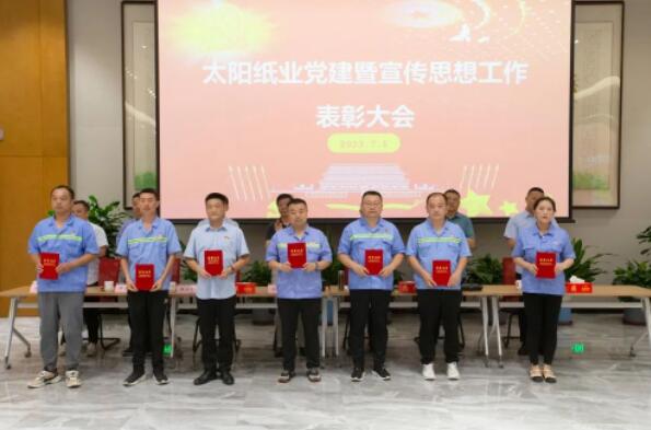 7月1日,山東太陽紙業股份有限公司黨委組織召開了黨建暨宣傳思想工作大會,熱烈慶祝中國共產黨成立102周年,隆重表彰2022年—2023年太陽紙業在黨建和宣傳戰線中涌現出的先進單位和個人。公司黨委副書記、副總經理應廣東,公司黨委紀委書記、組織委員、機關黨支部書記、副總經理陳昭軍,公司黨委委員、宣傳委員、副總經理王宗良,公司副總經理龐福成,公司各黨支部書記代表張文東、邵作運、吳文春,及各黨團支部代表、宣傳骨干代表參會。