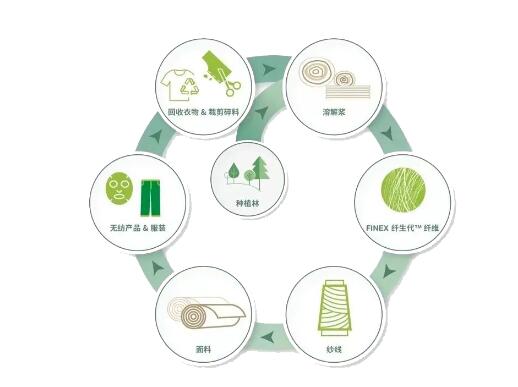 在萊賽爾產(chǎn)品開發(fā)過(guò)程中,賽得利邀請(qǐng)了來(lái)自國(guó)內(nèi)外的專業(yè)機(jī)構(gòu)對(duì)產(chǎn)品的碳足跡進(jìn)行測(cè)算。測(cè)算結(jié)果表明,每噸賽得利萊賽爾纖維的碳排放為2.13噸二氧化碳當(dāng)量,碳排放遠(yuǎn)低于各類傳統(tǒng)紡織纖維。 再生循環(huán)纖維 纖生代®FINEX®
