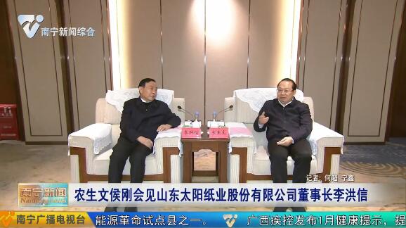 農(nóng)生文書記、侯剛市長對李洪信董事長一行表示歡迎,對南寧太陽紙業(yè)林漿紙一體化技改及配套產(chǎn)業(yè)園項目建設(shè)取得的進展成效表示充分肯定。農(nóng)生文書記表示,當前,南寧市正深入學習貫徹習近平總書記對廣西重大方略要求,牢固樹立綠水青山就是金山銀山的理念,充分發(fā)揮林業(yè)資源豐富的優(yōu)勢,大力發(fā)展林漿紙、綠色高端家具家居等產(chǎn)業(yè),著力打造千億林產(chǎn)品加工產(chǎn)業(yè),推進林產(chǎn)業(yè)富民增收,不斷開創(chuàng)林業(yè)高質(zhì)量發(fā)展新局面。太陽紙業(yè)作為全球先進的跨國造紙集團和中國造紙行業(yè)領(lǐng)軍企業(yè),在南寧的制漿造紙項目通過實施技改升級,實現(xiàn)了造紙產(chǎn)業(yè)向高端化、智能化、綠色化發(fā)展,成為盤活資產(chǎn)、傳統(tǒng)產(chǎn)業(yè)轉(zhuǎn)型、綠色低碳發(fā)展的典型案例。希望太陽紙業(yè)繼續(xù)發(fā)揮自身優(yōu)勢,搶抓平陸運河建設(shè)等機遇,利用好南寧東部新城這個大舞臺,加大投資力度、拓展合作領(lǐng)域,加快推動在邕新項目開工建設(shè),帶動更多配套產(chǎn)業(yè)落戶,實現(xiàn)造紙產(chǎn)業(yè)集群式發(fā)展。南寧市將持續(xù)優(yōu)化營商環(huán)境,進一步做好服務(wù)保障工作,全力支持太陽紙業(yè)在邕更好發(fā)展,實現(xiàn)互惠互利、合作共贏。
