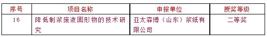 近日,山東省循環經濟科學技術獎評審委員會發布了《關于公布2023年山東省循環經濟科學技術獎名單的通知》,對評選出的59項科學技術獎予以公布。亞太森博(山東)漿紙有限公司完成的“降低制漿廢液固形物的技術研究”項目榮獲“山東省循環經濟科學技術獎二等獎”,是制漿造紙行業唯一獲獎項目。