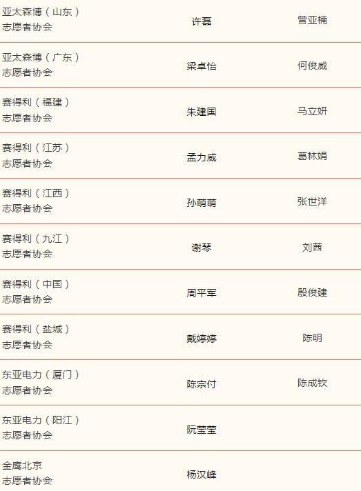優(yōu)秀志愿者名單