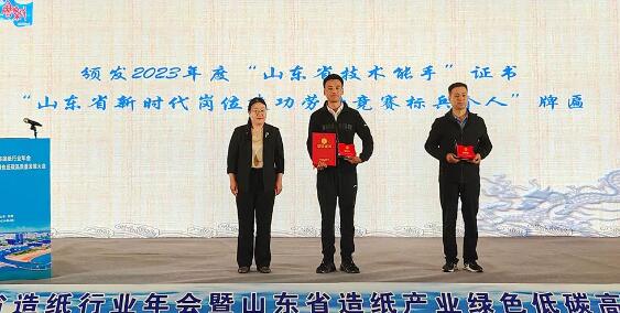 協會高興杰秘書長宣讀了山東協會關于對榮獲“山東省技術能手”“山東省新時代崗位建功勞動競賽標兵個人”稱號部分職工的褒獎通報。公司員工劉衍仕作為第五屆山東省造紙行業職業技能競賽冠軍選手榮獲“山東省技術能手”證書和“2023年度山東省新時代崗位建功勞動競賽標兵個人”牌匾,再次彰顯了太陽工匠的杰出風采。