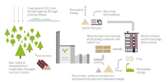 可持續發展需要全面提高資源效率 Sustainer的數字設計可以通過支持整個價值鏈中的可持續性和循環性(從采購到報廢解決方案)的建筑材料充分發揮其潛力。 說到KertoLVL,資源效率已始于森林,芬林集團利用樹木的每一部分生產附加值最高的產品。在生產過程中,芬林梅沙木業盡可能高效地使用原材料、能源和水。例如,96%的生產副產品被用作新產品和可再生能源的原材料。