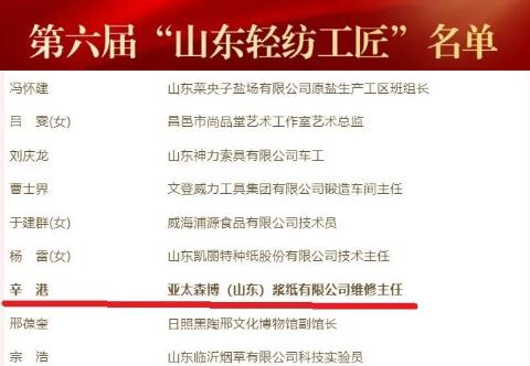 近日,第六屆“山東輕紡工匠”名單公布,公司紙板設備部機械維修主任辛港榜上有名,這是對他多年來在公司做出杰出貢獻的認可。辛港自2008年加入公司以來,以其卓越的技術才能和創新精神,為公司帶來了顯著的經濟效益和技術進步。