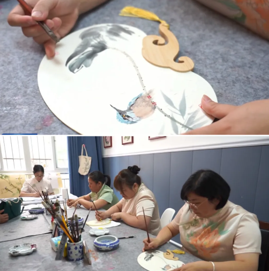 金鷹集團視自己為社區的一部分,通過支持教育、能力提升、社區關愛等一系列項目,攜手社區共同發展。截至2023年,金鷹集團在中國為社區發展累計投入超過5千萬元,員工志愿服務時長超過14萬小時。 日前,我們推出了“攜手社區 共同發展”系列,介紹金鷹集團在助力社區發展方面的一些做法。本期,我們推出:助力鄉村振興,金鷹集團亞太森博(山東)非遺手繪項目帶動村居婦女就業增收。 非遺畫筆繪出幸福新畫卷 深淺不一的墨色筆觸輕輕勾勒出枝條的形態,緊接著一只靈動的翠鳥傲立枝頭……不一會兒,一幅構圖巧妙、色彩雅致的手繪團扇就完成了。有意思的是,這幅細膩傳神的手繪畫作者韓琴琴并不是專業畫師,而是東韓家村的一位普通村民。