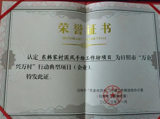 “萬企興萬村”行動典型項目(企業)證書 教會一門技藝,帶動一批就業,致富一方群眾。在帶動村民增收的同時,亞太森博(山東)非遺手繪項目也獲得了外界的認可。2023年,該項目被評為“萬企興萬村”行動典型項目(企業),還榮獲了第五屆山東省婦女創新創業大賽婦女手工賽道初創組“優勝獎”。 作為一家具有高度社會責任感的企業,亞太森博(山東)致力于與社區共建、共生、共贏、共享。未來,亞太森博(山東)將繼續努力,持續幫助村民增收致富,用實實在在的行動助力鄉村振興。