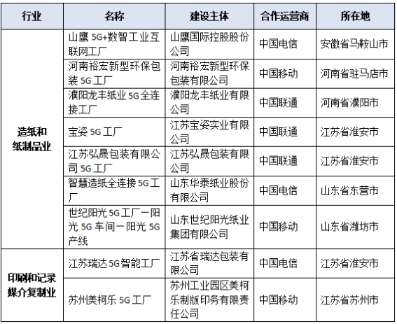 經(jīng)大致統(tǒng)計(jì),在此次擬核定的400個(gè)5G工廠項(xiàng)目名單中,涉及到印刷、包裝、造紙行業(yè)的企業(yè)具體如下: