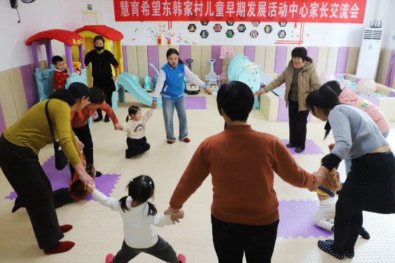 慧育希望東韓家村兒童早期發展活動中心由公司捐資建設,中心內部配置近500本兒童繪本,300多種玩教具,及海洋池、兒童滑梯等游樂設施,通過“一對一親子游戲”“一對一親子課程”“集體游戲和活動”“集體故事會”等互動,提升家長科學育兒觀念,促進嬰幼兒在認知、語言、運動和社會情感方面的綜合發展,幫助嬰幼兒激發潛能、健康成長。 該項目旨在通過科學干預保護幼童的發展潛力,促進嬰幼兒在認知、語言、運動和社會情感方面的綜合發展。項目通過建立兒童早期發展活動中心,為當地0-3歲嬰幼兒提供親子活動場地;同時,養育師為參加中心活動的嬰幼兒提供按照周齡定制的“一對一”課程和集體課程服務,并為其家長提供科學養育和兒童早期發展的專業指導。中心為公益項目,由亞太森博提供資金支持,不收取任何費用。