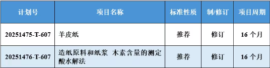 近日,國家標準化管理委員會下達2025年第四批推薦性國家標準計劃及相關標準外文版計劃的通知(國標委發(fā)〔2025〕23號)。其中,《羊皮紙》等2項造紙領域國家標準計劃項目獲批立項,具體如下所示。
