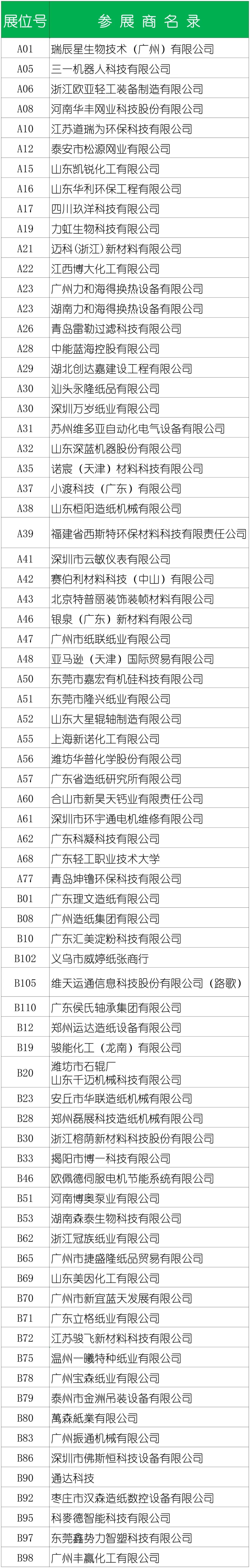 由廣東、山東、河南、浙江、四川、廣西、江西、湖北、福建、江蘇、河北、山西、云南、湖南等造紙協(學)會主辦的2025第二十屆廣州國際紙展暨生活用紙展,將于6月5日-7日,在廣州琶洲保利世貿博覽館隆重召開。 來自制漿造紙、紙業、特種紙、造紙化學品、衛生用品、生活用紙等領域的200多家優秀企業,致力于為全球紙企、經銷商、印刷廠、紙包裝廠、紙張終端用戶等搭建“一站式”采購平臺。 2025第二十屆廣州國際紙展的參展企業和品牌,集中展示制漿造紙、紙業、特種紙、造紙化學品、衛生用品和生活用紙等領域的創新產品、技術和解決方案,滿足專業觀眾和經銷商的采購需求。 請查看本屆參展商及品牌名單: