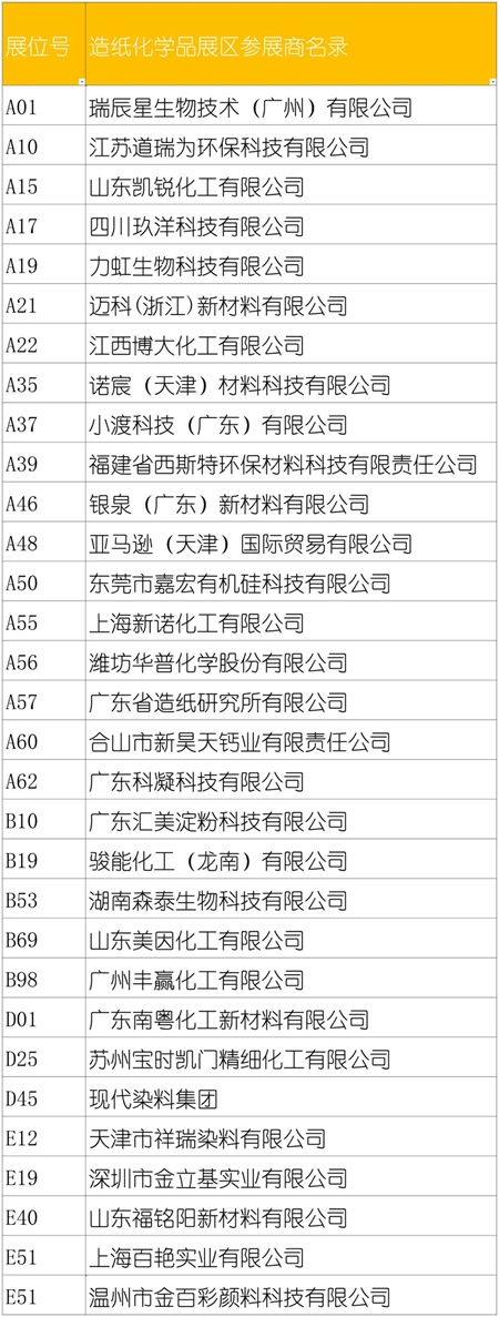 30+造紙化學品企業 造紙化學品展區將全面展示變性淀粉、施膠劑、水溶性高分子聚合物、功能性及過程性造紙化學品、填(顏)料、涂布粘合劑(膠料)、造紙生物酶及生物技術、造紙用各類水處理劑、其它各類造紙化學品等。