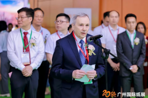 俄羅斯駐廣州領(lǐng)事館總領(lǐng)事切爾諾烏索夫•亞歷山大 廣東省商務(wù)廳外經(jīng)合作處四級調(diào)研員吳旭君、廣東省造紙行業(yè)協(xié)會會長翁卓、玖龍紙業(yè)(控股)有限公司集團(tuán)銷售總經(jīng)理蔡何強(qiáng)、理文造紙集團(tuán)執(zhí)行董事李浩中、俄羅斯駐廣州領(lǐng)事館總領(lǐng)事切爾諾烏索夫•亞歷山大、巴基斯坦紙商協(xié)會副會長Khamis Saeed Butt、廣西造紙行業(yè)協(xié)會副會長兼秘書長黃顯南、鄭州運(yùn)達(dá)造紙?jiān)O(shè)備有限公司國際業(yè)務(wù)部部長孫軍偉、駿能化工(龍南)有限公司總經(jīng)理王遠(yuǎn)汀、佛山市寶索機(jī)械制造有限公司副總裁彭偉東、廣州造紙集團(tuán)有限公司總經(jīng)理助理申斌等嘉賓,共同為大會剪彩。