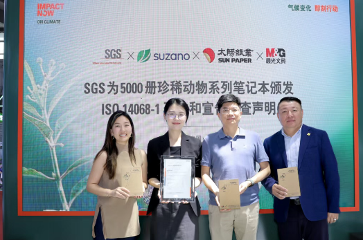 作為太陽紙業攜手價值鏈合作伙伴書贊桉諾與晨光推出的中國首個覆蓋全產業鏈的碳中和筆記本,經過SGS核查,其通過嚴格的碳足跡測算與優化,產品實現了從原料獲取、生產制造、物流分銷到消費后廢棄處理——“從搖籃到墳墓”的全生命周期碳中和,真正做到從源頭到終端的綠色閉環。 太陽紙業市場總監潘天倚表示:“太陽紙業始終將碳中和目標深度融入企業戰略,目前光伏發電、生物質能源等可再生能源占比已高達44.75%。此次合作不僅是三方在價值鏈協同脫碳上的突破,更是對‘全生命周期責任’理念的生動詮釋。未來,我們將持續擴大生物基材料的規模化應用,推動更多終端產品實現‘從搖籃到墳墓’的碳中和,讓造紙行業成為全球氣候行動的創新引擎。” 書贊桉諾亞洲可持續發展、企業傳播和品牌負責人蘇宇婕強調:“今年COP30將于巴西舉辦。值此契機,這一合作展現了書贊桉諾與合作伙伴等中巴企業通過價值鏈創新實踐應對氣候危機的決心。” 晨光ESG經理劉春元表示:“作為中國文具行業首個發布ESG報告的上市企業,晨光從首款碳中和文具,到今年攜手書贊桉諾、太陽紙業推出珍稀動物系列碳中和筆記本,持續開展青少年環保教育事業,希望以文具為載體,讓可持續從理念走到消費者身邊,以實際行動助力全球可持續實踐。” SGS管理與保證事業群華東區總經理陳慧均表示:“碳中和不是單一環節的技術突破,而是全產業鏈的系統性變革。SGS以第三方公正性,確保每個環節的減排承諾經得起國際標準檢驗。”
