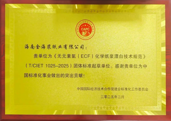 近日,由中國國際經濟技術合作促進會標準化工作委員會聯合海南金海漿紙業有限公司和國內相關造紙企業、高校及相關機構等共同起草的《無元素氯(ECF)化學紙漿漂白技術規范》團體標準正式發布。海南金海漿紙業有限公司作為核心起草單位之一,深度參與了該標準的制定工作,為行業綠色可持續發展提供了技術支撐。