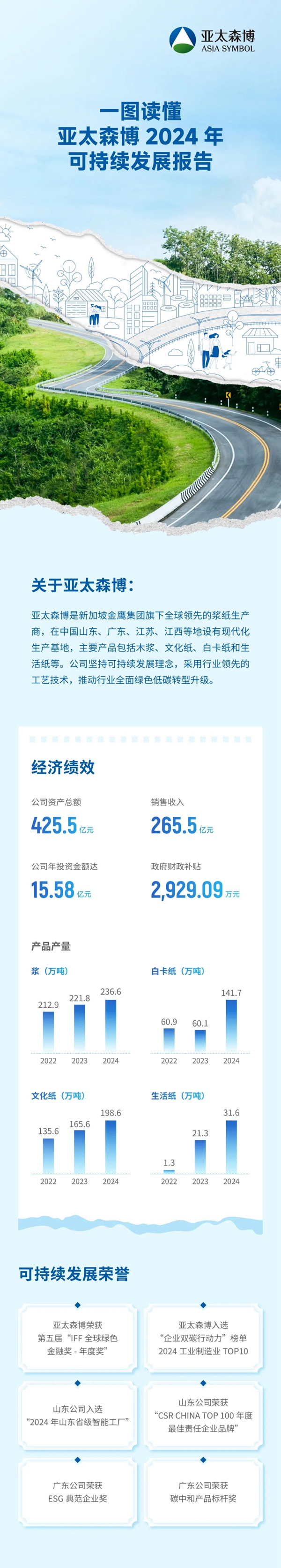 6月28日,亞太森博正式發布《2024年可持續發展報告》(中英文雙語),這也是企業發布的第八份可持續發展報告。