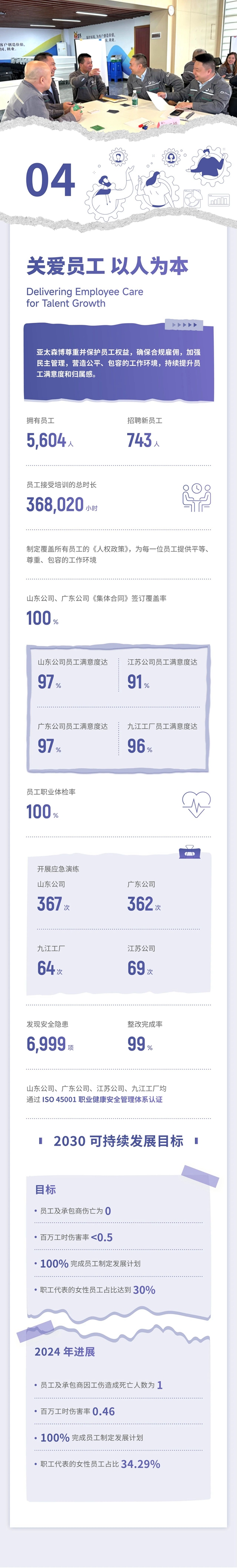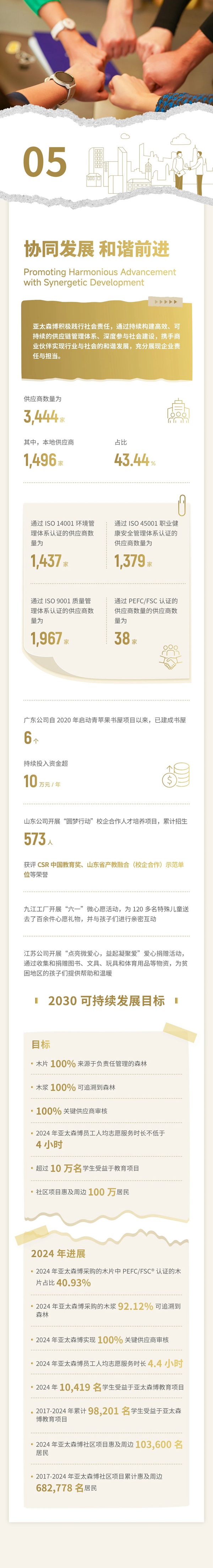 報告通過“誠信經營穩健前行”“綠色發展守護未來”“創新驅動品質保障”“關愛員工以人為本”“協同發展和諧前行”等章節,用詳實的數據和案例全面展示了亞太森博2024年度可持續發展績效,系統回應了各利益相關方關注的實質性議題,表達了亞太森博愿與所有利益相關方攜手共進,共同書寫美好未來的信心和決心。