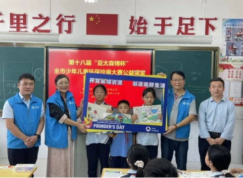 此前的9月18日,該團隊曾到五蓮縣松柏鎮中心學校開展第十八屆“亞太森博杯”全市少年兒童環保繪畫大賽啟動儀式。