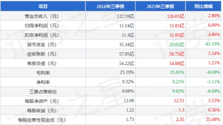 裕同科技(002831) 公司營業總收入126.01億元,同比上升2.8%,歸母凈利潤11.81億元,同比上升6.0%。