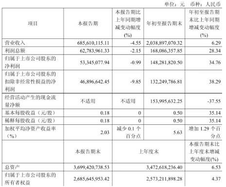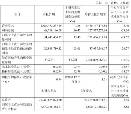 景興紙業(002067) 公司實現營業總收入41.97億元,同比增長3.64%;歸母凈利潤4086.15萬元,同比下降18.33%。