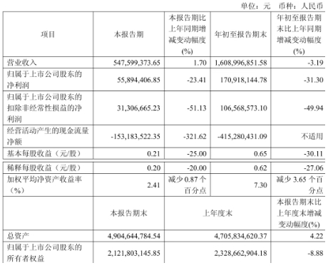 華泰股份(600308) 公司實現營業總收入94.81億元,同比下降1.49%;歸母凈利潤7258.66萬元,同比下降56.68%。