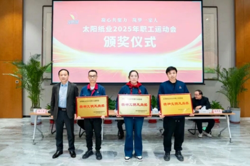 11月14日,太陽(yáng)紙業(yè)2025年職工運(yùn)動(dòng)會(huì)頒獎(jiǎng)儀式隆重舉行,公司領(lǐng)導(dǎo)李魯、陳昭軍、劉紀(jì)營(yíng)、高樹(shù)吉、任廣濤等出席頒獎(jiǎng)儀式,并為獲獎(jiǎng)集體與個(gè)人頒獎(jiǎng)。