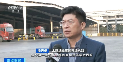 在山東濟寧一家大型造紙企業的車間內,一卷卷牛卡紙正陸續下線,企業負責人表示,近期確實對價格進行了多輪上調。 太陽紙業集團市場總監潘天倚:“這一輪價格上漲是非常激烈的,到目前為止,我們跟上半年的價格相比,上漲幅度基本上達到25%以上。”