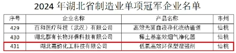 湖北嘉韻化工科技有限公司(以下簡稱“湖北嘉韻化工”)深耕造紙化學品領域近30年,2025年憑借低氯高效環保型濕強劑核心產品成功入圍湖北省經濟和信息化廳發布的《2024年湖北省制造業單項冠軍企業名單》,成為湖北省制造業單項冠軍企業中的新晉力量,彰顯了企業在精細化工領域的技術硬實力與市場競爭力。