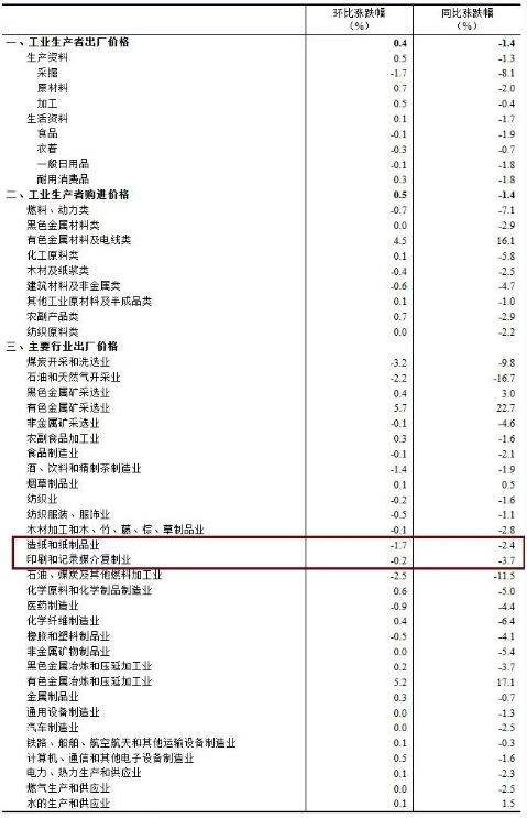 二、工業(yè)生產(chǎn)者價格環(huán)比變動情況 1月份,工業(yè)生產(chǎn)者出廠價格中,生產(chǎn)資料價格上漲0.5%,影響工業(yè)生產(chǎn)者出廠價格總水平上漲約0.37個百分點。生活資料價格上漲0.1%,影響工業(yè)生產(chǎn)者出廠價格總水平上漲約0.01個百分點。 工業(yè)生產(chǎn)者購進(jìn)價格中,有色金屬材料及電線類價格上漲4.5%,化工原料類價格上漲0.1%;黑色金屬材料類、紡織原料類價格均持平。 值得關(guān)注的是,2026年1月份印刷和記錄媒介復(fù)制業(yè)工業(yè)生產(chǎn)者出廠價格同比下降3.7%;造紙和紙制品業(yè)工業(yè)生產(chǎn)者出廠價格同比下降2.4%。 2026年1月份工業(yè)生產(chǎn)者價格主要數(shù)據(jù)