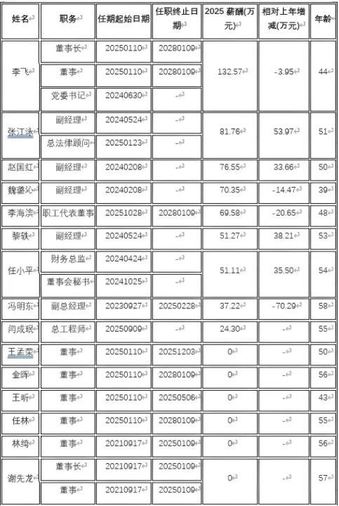 3月11日,冠豪高新公告,聘任閆成珉先生為公司總工程師。資料顯示,閆成珉:男,廣東冠豪高新技術股份有限公司總工程師。 根據(jù)2025年報數(shù)據(jù),剔除獨立董事、監(jiān)事會主席、監(jiān)事后,冠豪高新共有15位董事和高級管理人員。從年齡看,冠豪高新董事和高級管理人員平均年齡為51歲,年齡中位數(shù)為53歲,其中,副總經(jīng)理馮明東年齡最高為58歲,副經(jīng)理魏璐沁年齡最小為39歲。從薪酬看,董事和高級管理人員合計領取報酬594.71萬元,平均薪酬77.27萬元,年薪中位數(shù)為73.45萬元。其中,董事長、董事及黨委書記李飛薪酬最高為132.57萬元,財務總監(jiān)及董事會秘書任小平薪酬最低為51.11萬元(2025年任期不滿1年的不參與統(tǒng)計)。