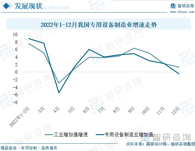 內容概要:造紙設備是專業(yè)性很強的行業(yè),涉及機械、化工、材料、防腐等多個技術性領域。在“制造強國”戰(zhàn)略及相關政策引導下,造紙設備行業(yè)參與者逐漸增多。隨著造紙設備生產商紛紛加大研發(fā)力度及航空、造船等跨行業(yè)投資者參與布局造紙機械設備的研發(fā)生產,行業(yè)技術水平逐步提高。截至2022年底,我國合計擁有2273想造紙設備相關專利,其中實用新型專利1670項,發(fā)明專利578項。隨著行業(yè)自主創(chuàng)新能力不斷加強,及下游需求拉動下,造紙設備國產化進程也不斷加快。 關鍵詞:造紙設備、紙漿、生活用品紙 一、制造業(yè)整體呈恢復向好發(fā)展,行業(yè)營業(yè)收入穩(wěn)步增長 2022年以來,在國際大宗商品價格高位運行及疫情多地反復爆發(fā)影響下,國內制造業(yè)受到一定沖擊,但在國家統籌調控下,我國制造業(yè)呈恢復向好態(tài)勢。2022年,全國規(guī)模以上工業(yè)生產保持穩(wěn)定恢復態(tài)勢,增加值較上年增長3.6%。造紙設備是專用設備制造業(yè)的細分領域,2022年以來,我國專用設備制造業(yè)增加值增速與工業(yè)增加值增速走勢基本保持一致。2022年1-4月,受多地疫情及俄烏沖突導致的能源價格上漲影響,專用設備生產企業(yè)經營受到較大沖擊,行業(yè)增加值增速降至-5.5%,位于臨界點以下。5-6月,隨著穩(wěn)經濟一攬子政策措施,企業(yè)復工復產加快,專用設備制造業(yè)增加值增速迅速提升。7-9月,國家出臺了一系列推動工業(yè)經濟平穩(wěn)健康發(fā)展的措施,專用設備制造業(yè)增速保持穩(wěn)定增長。10-12月,外部不確定性上升,制造業(yè)面臨較大壓力,專用設備制造業(yè)增速持續(xù)下滑;其中12月隨著防疫政策優(yōu)化調整,新冠感染量大幅增加,專用設備制造業(yè)增速下降至-0.5%,降至臨界點以下,行業(yè)生產有所回落。