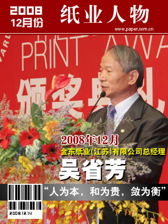 吳省芳,金東紙業(江蘇)有限公司總經理,“人為本,和為貴,斂為衡”是吳省芳的管理理念和處世原則。