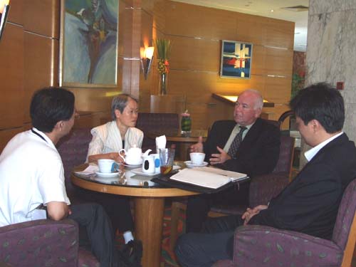 中國紙網(wǎng)記者與主辦方克勞斯公司市場運營總監(jiān)孔慶堂交流